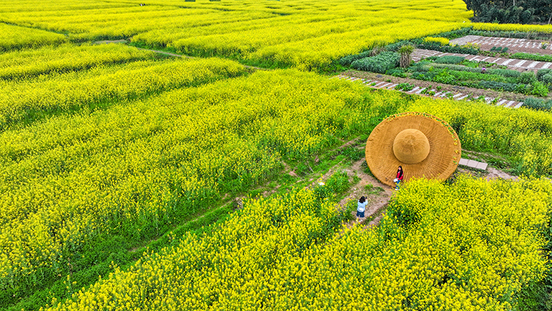 中国・重慶潼南区で菜の花が見頃 花畑に観光客