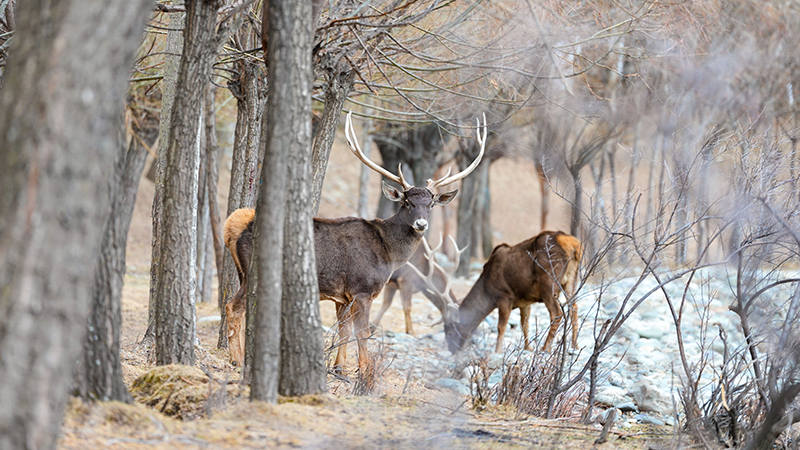 山林を歩くクチジロジカを確認 中国・西蔵自治区山南市