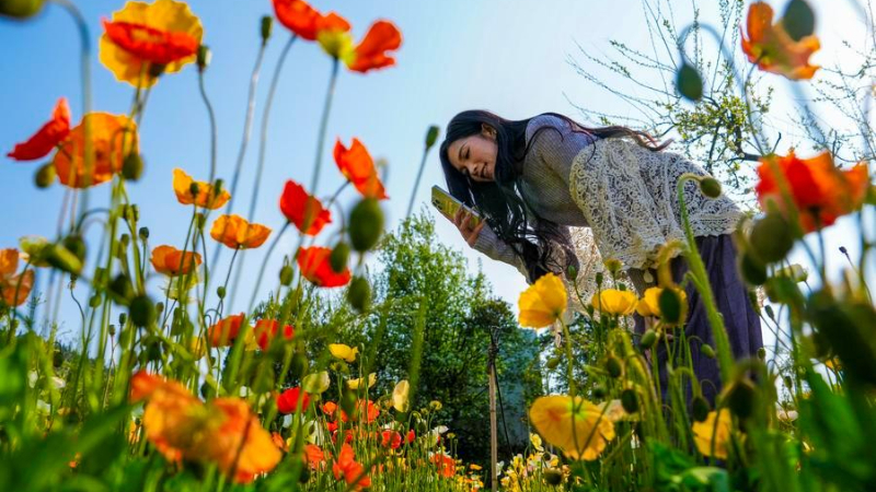 春の花畑で花々が競演 中国浙江省