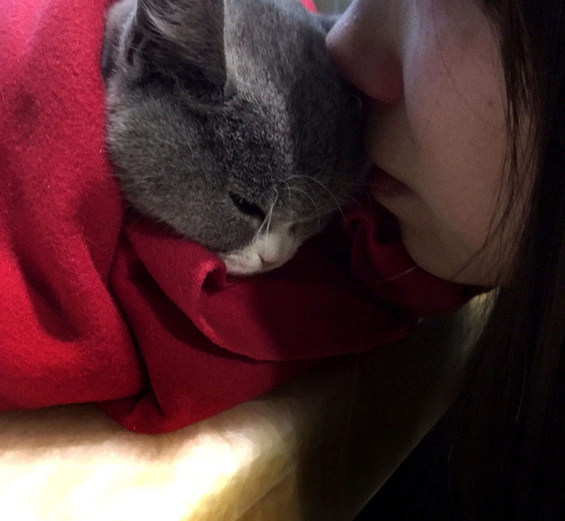 このブリティッシュショートヘアは生後5カ月で、猫伝染性腹膜炎を患った。この病気は死亡率が高い。飼い主である90年代生まれの少女は、愛猫が死ぬまでの24時間を携帯電話で記録した。彼女は涙を流しながらこれらの姿を撮り、医者の「一番苦しい時でも可愛い仕草を見せることを忘れていない」という言葉も愛猫への最後の贈り物になった。