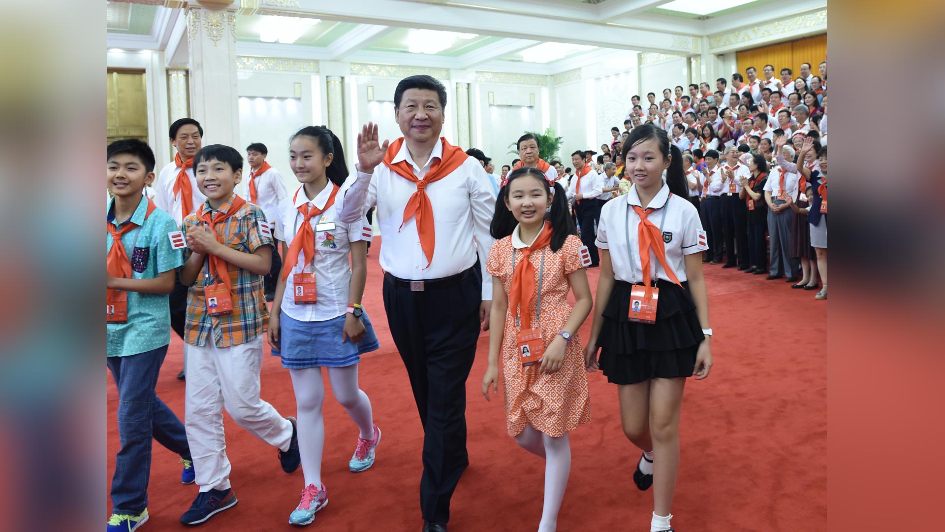 2015年6月1日、中国共産党と国家の指導者習近平、劉雲山などは北京の人民大会堂で中国少年先鋒隊第七回全国代表大会の代表全員と親切的に会見した。