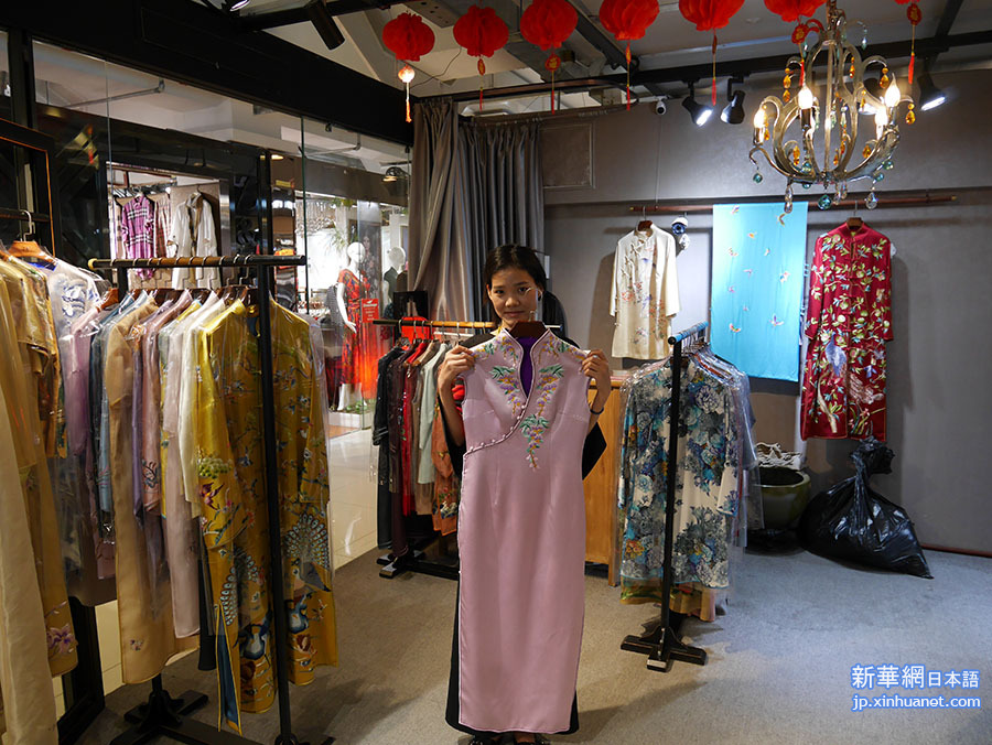 中国河南省籍の商売人、秦小悦さんが経営するオーダーメイド婦人服店。(新華社記者/馬岩)