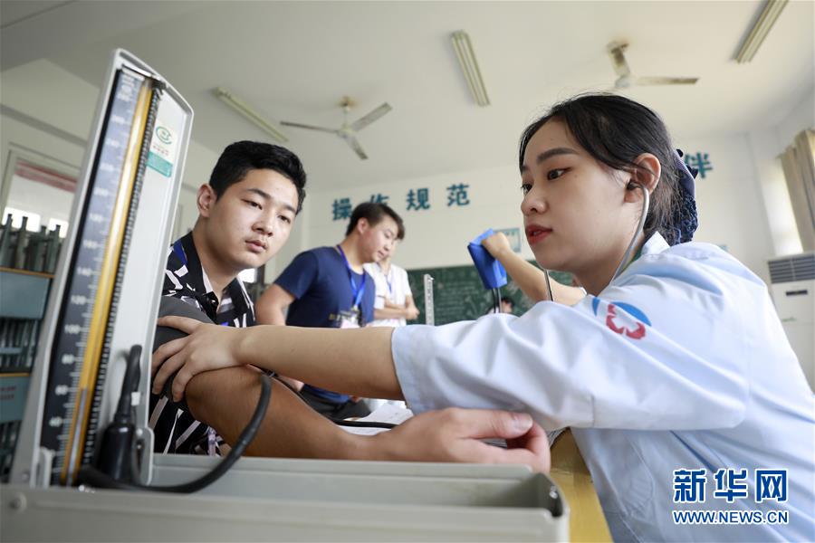 江蘇省盱眙県の徴兵身体検査ポイントで検査を受ける青年(7月31日、撮影・周海軍)。