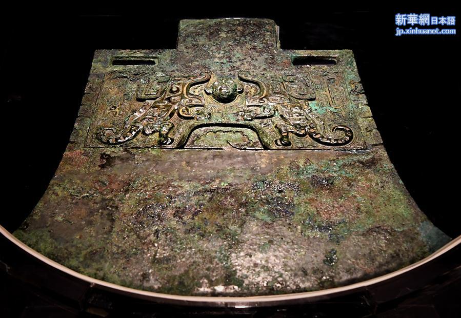 12日、安陽博物館で展示された「婦好銅鉞(ふこうどうえつ)」。(安陽=新華社記者/李安)
