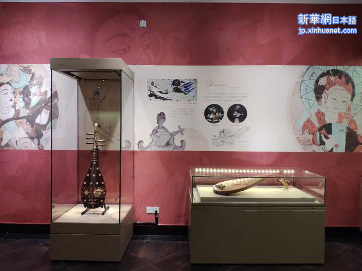 1日、成都永陵博物館で開催されている「永陵二十四伎楽‐音楽文化展」の会場。(成都=新華社配信/成都永陵博物館提供)