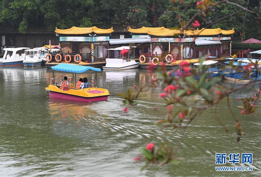5日、福建省福州市の西湖で舟遊びをする観光客。(福州=新華社記者/林善伝)