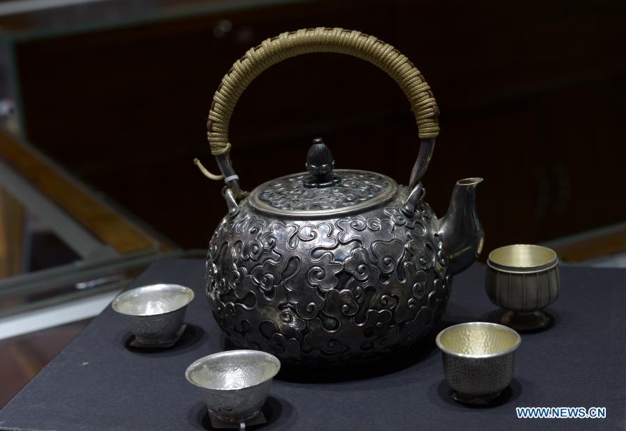 17日、丹寨県の銀製品工房で作られた茶器。(丹寨=新華社記者/楊楹)
