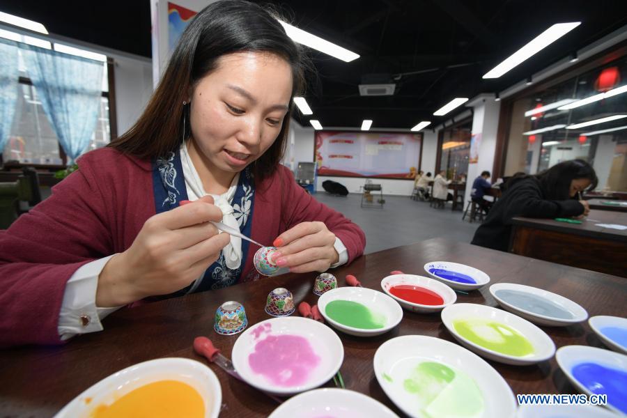 17日、丹寨県の銀製品工房で銀器を作る従業員。(丹寨=新華社記者/楊楹)
