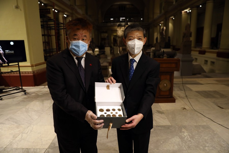 カイロ市内のエジプト博物館で行われた返還式典で、同国のアナニ観光・考古相が中国の廖力強(りょう・りききょう)駐エジプト大使に引き渡した。式典では、サウジアラビアとインドへも通貨69枚が返還された。