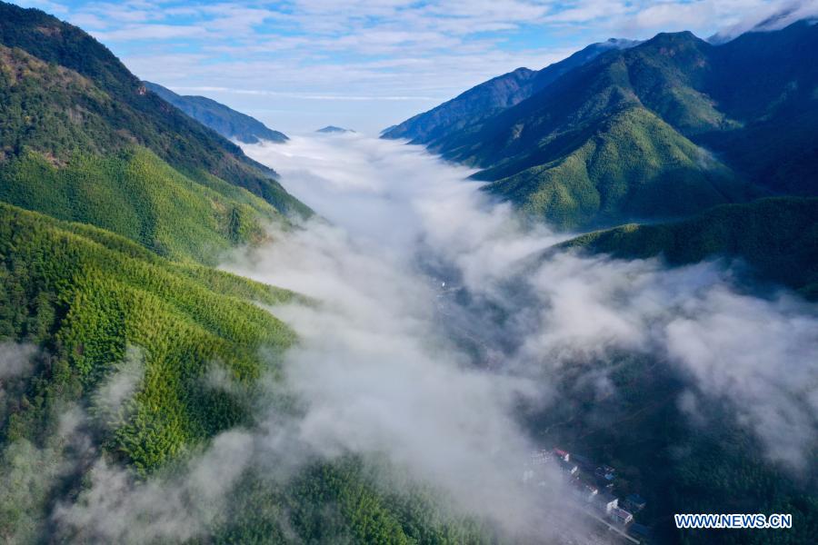 1日、福建省の武夷山国家公園に現れた雲海。(小型無人機から、福州=新華社記者/姜克紅)