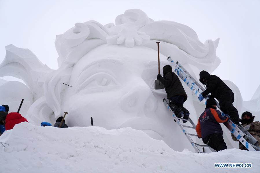 10日、第33回太陽島国際雪像芸術博覧会が開かれる黒竜江省ハルビン市の会場。(ハルビン=新華社記者/王建威)