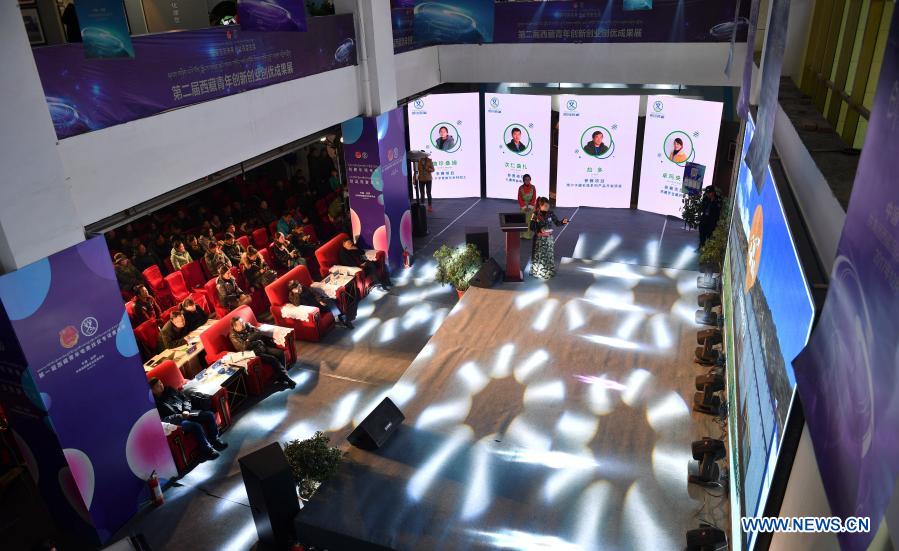 「第1回チベット自治区青年電子商取引貧困扶助創業コンテスト」決勝戦の会場の様子。(2018年1月11日撮影、ラサ=新華社記者/晋美多吉)