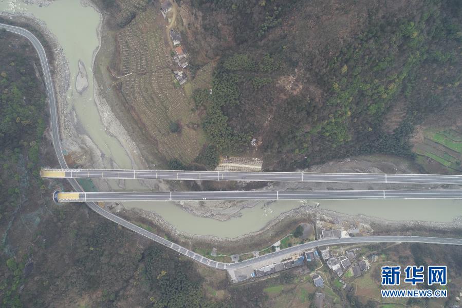 2020年12月23日に正式に開通した陝西省安康市と嵐皋県を結ぶ高速道路。(1月5日撮影、小型無人機から、安康=新華社記者/邵瑞)