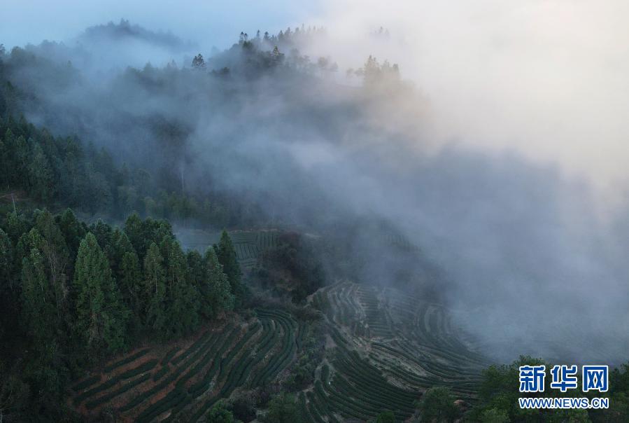 15日、武夷山風景名勝区に広がる雲海。(小型無人機から、武夷山=新華社記者/魏培全)