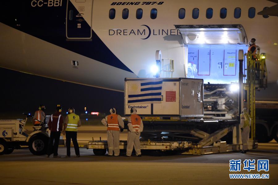 25日、ウルグアイ・モンテビデオに到着したシノバック製新型コロナワクチン。(モンテビデオ=新華社配信)