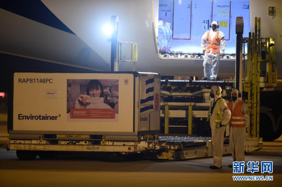 25日、ウルグアイ・モンテビデオに到着したシノバック製新型コロナワクチン。(モンテビデオ=新華社配信)