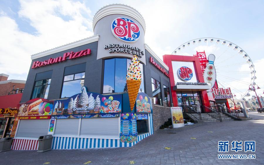 2日、カナダ・オンタリオ州のナイアガラの滝周辺の観光エリアで休業中のレストラン。(オタワ=新華社配信/鄒崢)