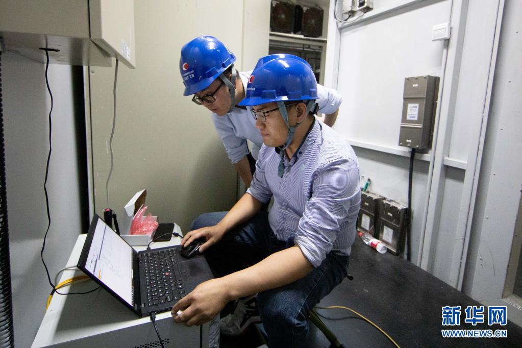 3月30日、「天眼」のケーブル駆動機関室で機器をメンテナンスするスタッフ(メンテナンス期間中に撮影)。(平塘=新華社記者/欧東衢)