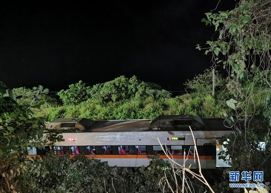 2日、花蓮県で脱線したタロコ408号の事故現場。(台北=新華社配信)