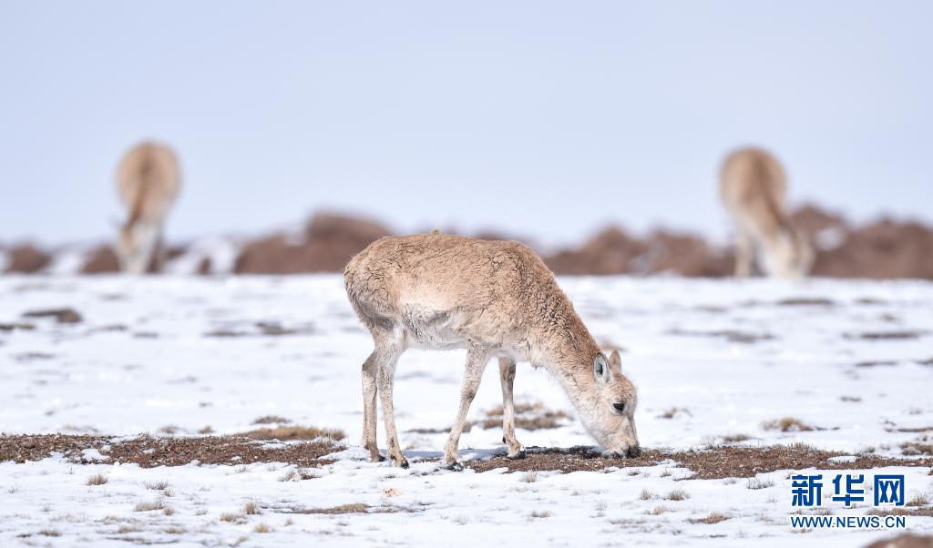 20日、三江源のココシリ(可可西里)地区に生息するチベットカモシカ。(西寧=新華社記者/呉剛)