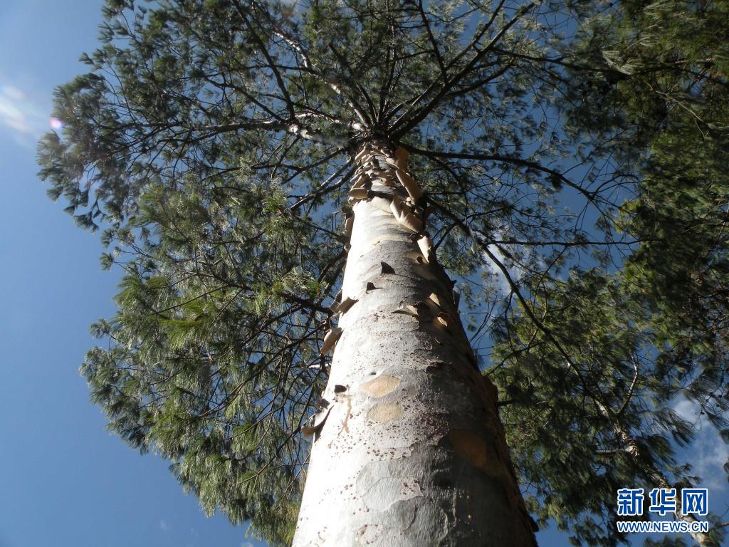 雲南省昭通市巧家県で生育している「五針白皮松」。(2011年1月1日撮影、昭通=新華社配信/李文虎)