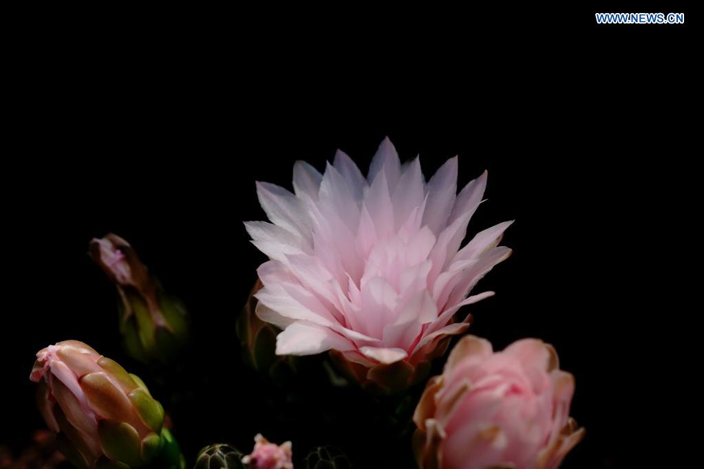 2日、上海市松江区の現代農業パークにある「柳紅園芸」多肉植物基地で、あでやかに咲く海王丸。(上海=新華社記者/張建松)