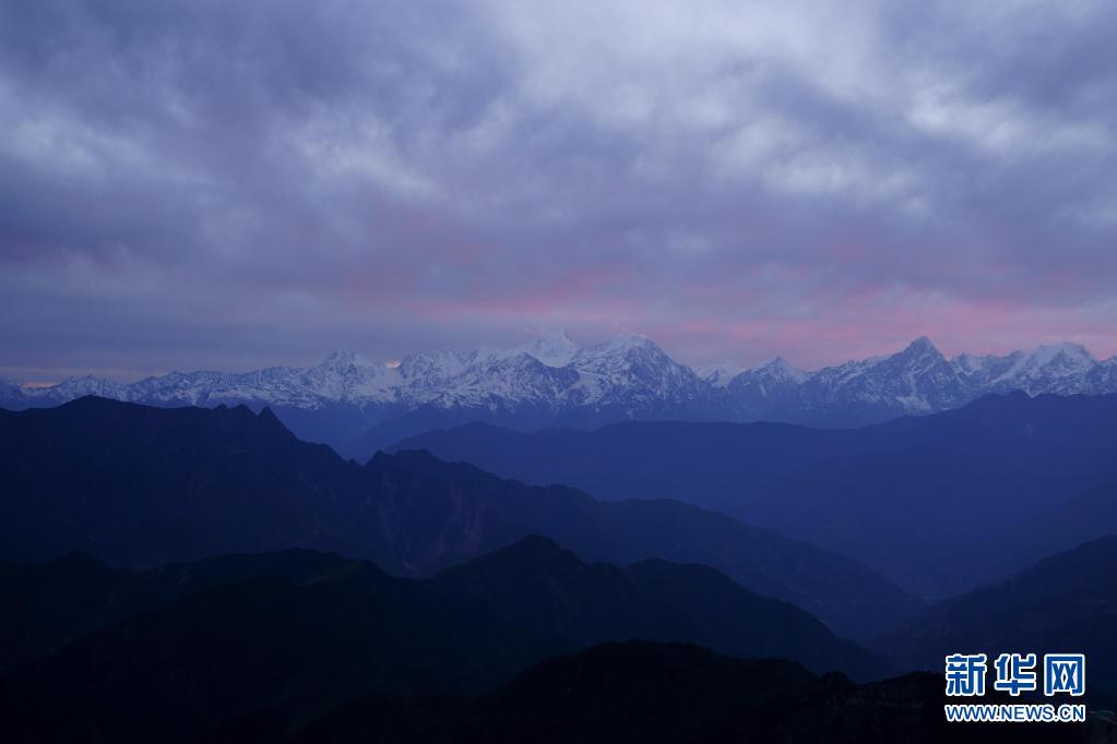 1日、牛背山の西に見えるミニヤコンカの群峰。(成都=新華社記者/江宏景)