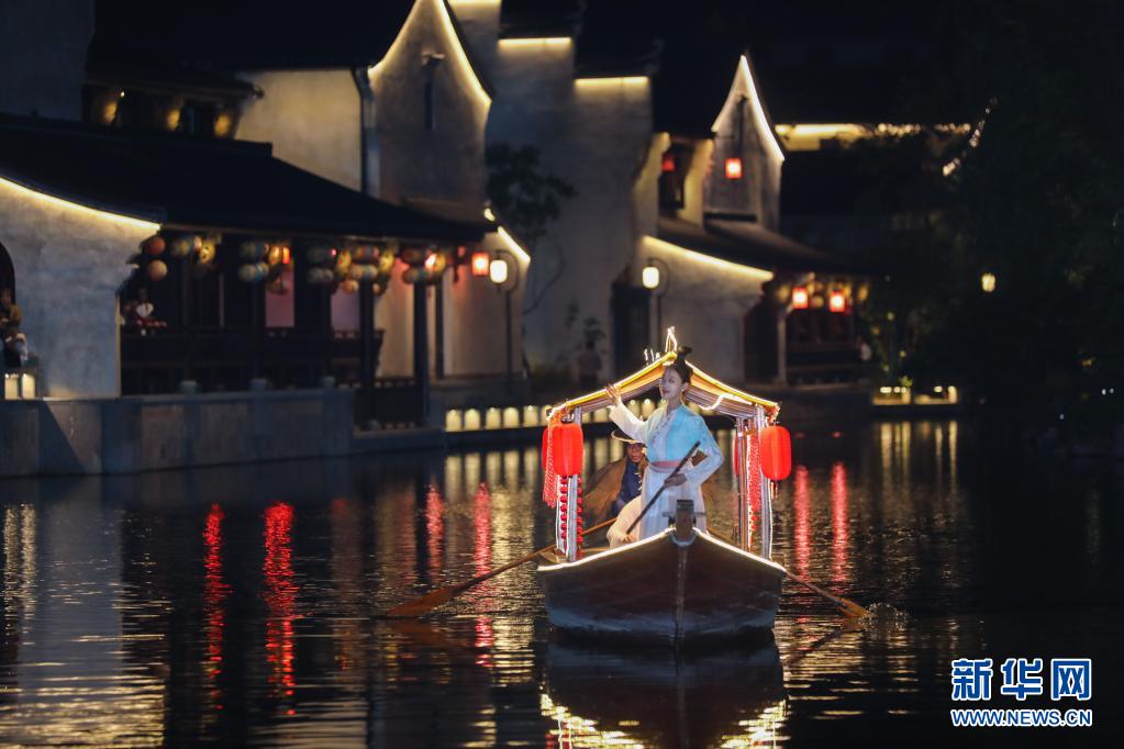 2日、厳州古城で行われた玉帯河ナイトツアー。(杭州=新華社記者/徐昱)