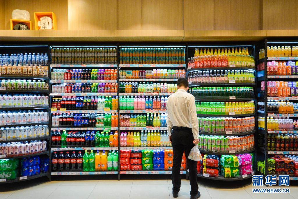 9月、河北省邯鄲市のスーパーで飲料を選ぶ買い物客。(邯鄲=新華社配信/李昊)