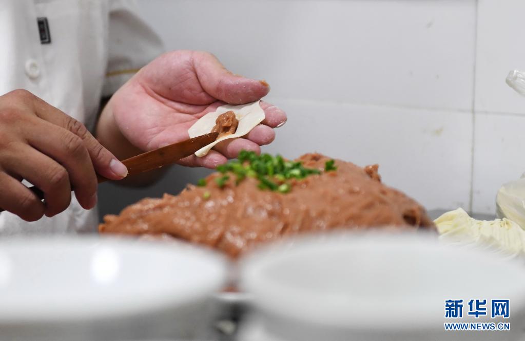 11日、「沙県扁肉(シャーシェンビエンロウ)」を作る沙県廟門扁肉の伝承者、王盛浜(おう・せいひん)さん。(三明=新華社記者/林善伝)