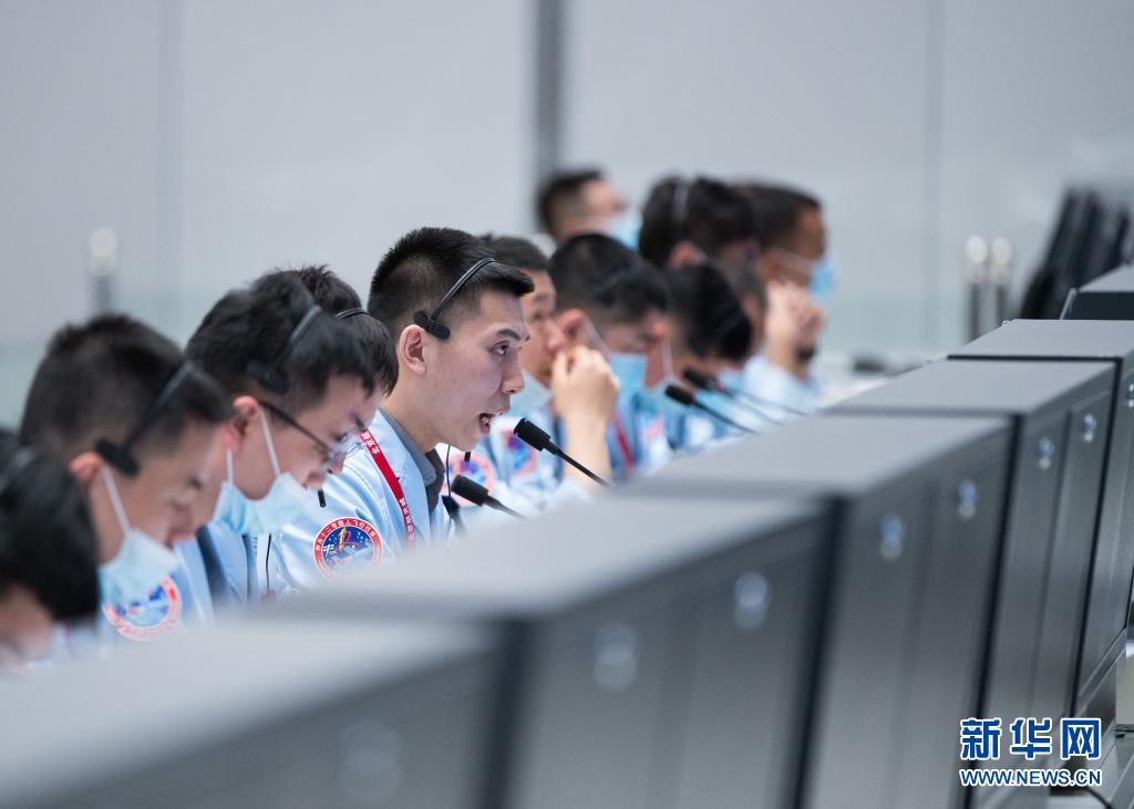 17日、北京航天飛行制御センターで、「神舟12号」と「天和」のドッキングをモニタリングする技術スタッフ。(北京=新華社記者/金立旺)