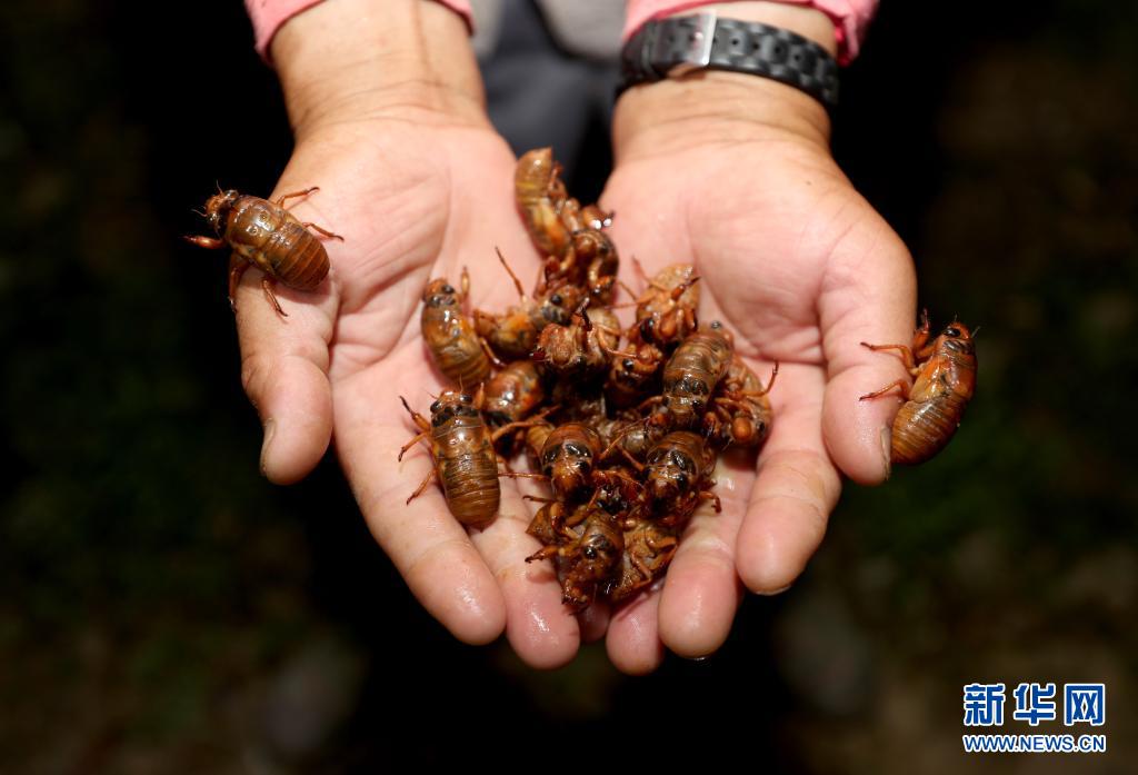 21日、安徽省滁州市全椒県六鎮鎮大張村で飼育されているセミの幼虫。(滁州=新華社配信/沈果)