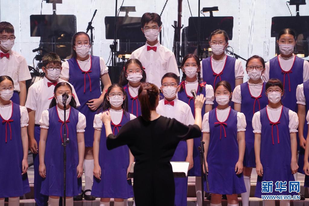 6月30日、歌声を披露する香港児童合唱団の子どもたち。(香港=新華社記者/王申)