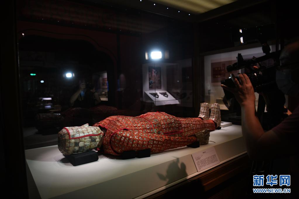 10日、「海宇攸同-広州秦漢考古成果展」で展示された絲縷玉衣(しろうぎょくい)。(北京=新華社記者/金良快)