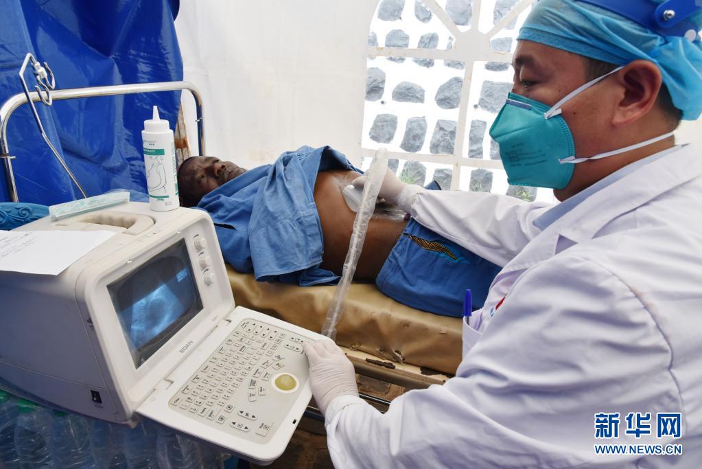 12日、カメルーン・バンガンテ市で、健康診断を行う医師。(ヤウンデ=新華社配信)