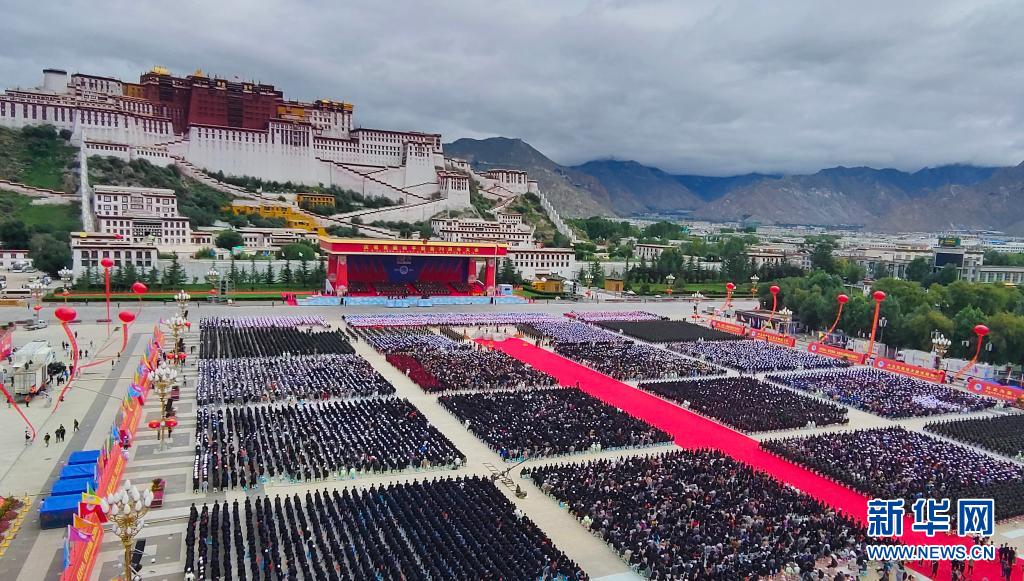 19日、ラサ市で行われたチベット平和解放70周年祝賀大会。(ラサ=新華社記者/孫瑞博)