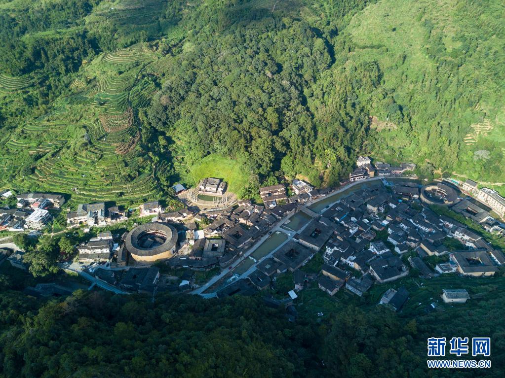 16日、漳州市南靖県書洋鎮塔下村。(小型無人機から、南靖=新華社記者/宋為偉)