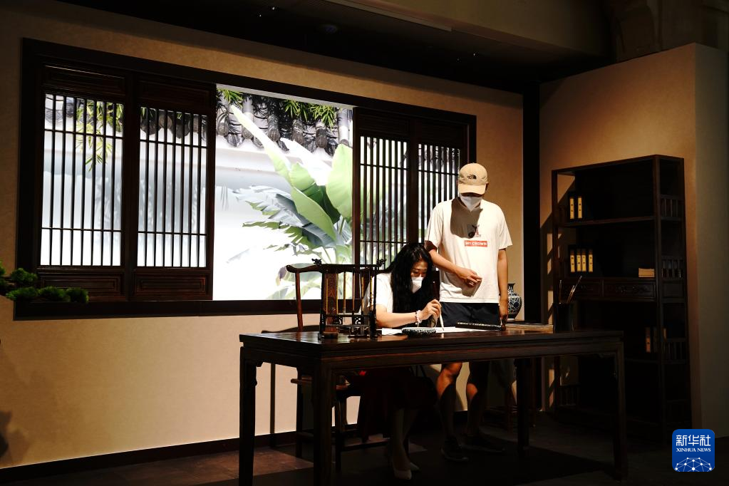 7月29日、「江南生活の美学」展で文人の生活を体験する来場者。(上海=新華社記者/張建松)pagebreak