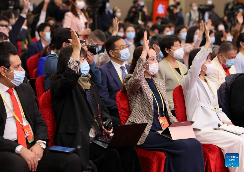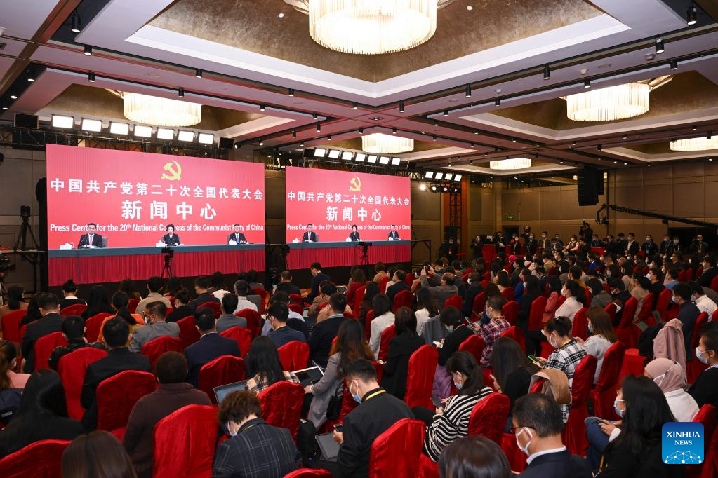 中国共産党第20回全国代表大会(党大会)は20日、北京のメディアセンターで記者会見を開いた。中国共産党中央対外連絡部の沈蓓莉(しん・ばいり)副部長と外交部党委員会委員で副部長の馬朝旭(ば・ちょうきょく)氏が「習近平(しゅう・きんぺい)外交思想が中国の特色ある大国外交の開拓と前進を導く」というテーマを巡って記者の質問に答えた。(北京=新華社記者/金良快)
