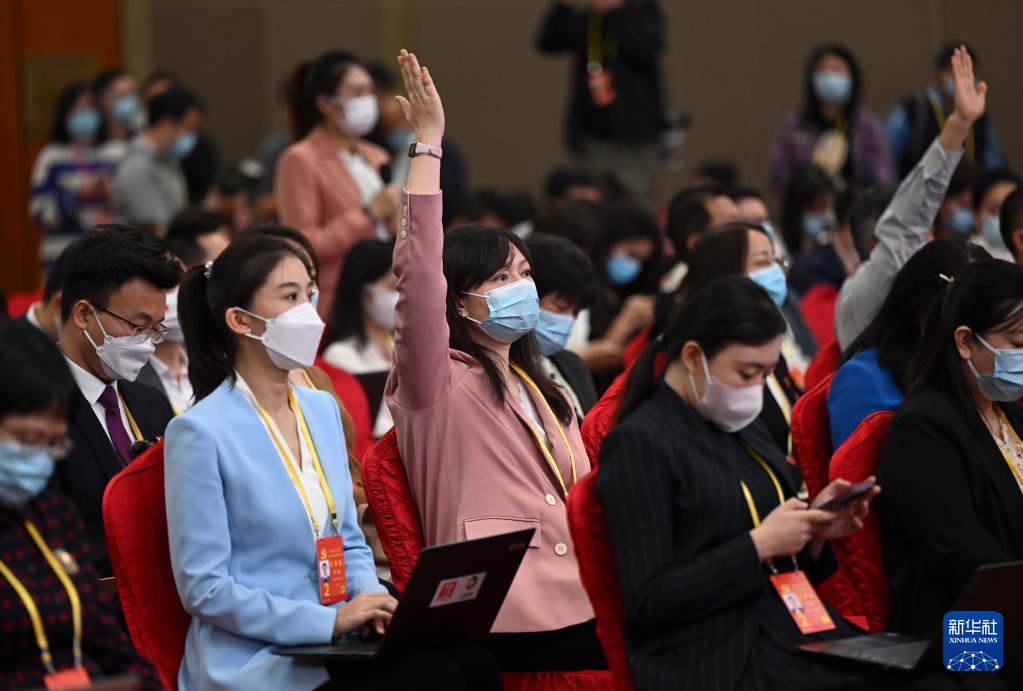中国共産党第20回全国代表大会(党大会)は21日、北京のメディアセンターで記者会見を開いた。中国生態環境部党組メンバーで副部長の翟青(たく・せい)氏が「人と自然が調和し共生する美しい中国の建設」というテーマを巡って記者の質問に答えた。写真は記者会見のサブ会場で質問のため挙手する記者ら。(北京=新華社記者/金良快)