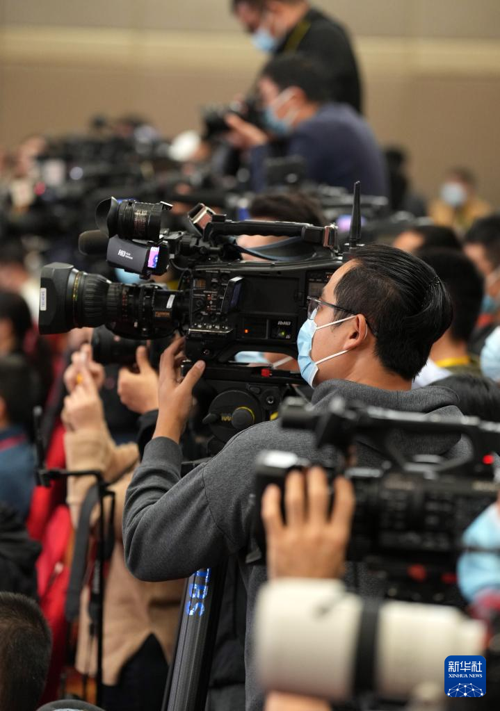 中国共産党第20回全国代表大会(党大会)のメディアセンターで20日、5回目のグループインタビューが行われた。青海省、寧夏回族自治区、新疆ウイグル自治区、中央・国家機関、中央金融機関、中央企業(在北京)の代表団報道官が出席して、各代表団の党大会報告の学習・討議状況を説明し、記者の質問に答えた。写真はグループインタビューのサブ会場で質問する記者。(北京=新華社記者/陳曄華)