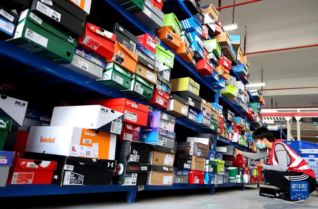 11日、江蘇省連雲港市海州区の天馬電子商取引(EC)産業パークで、注文された商品を探す従業員。(連雲港=新華社配信/耿玉和)pagebreak