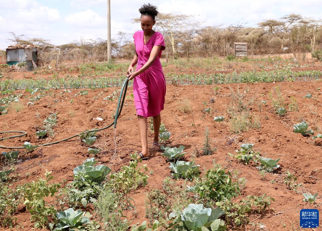 10日、ケニアのキムカで、畑の水やりをする住民。(キムカ=新華社記者/董江輝)pagebreak