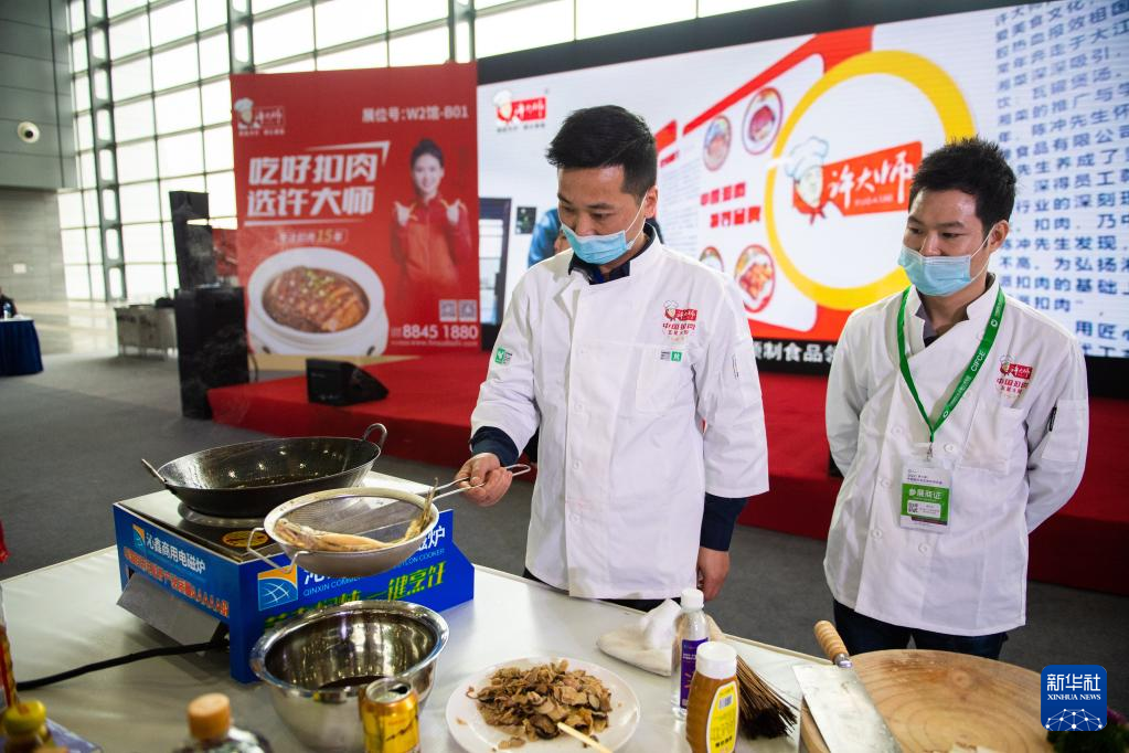 24日、来場者の試食用の料理を準備するスタッフ(左)。(長沙=新華社記者/陳思汗)pagebreak