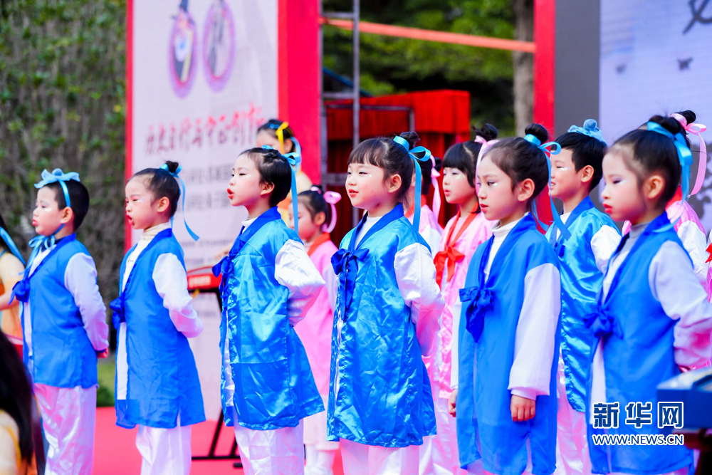 10日、開幕式で朱子家訓を朗読する子どもたち。(アモイ=新華社記者/劉黙涵)