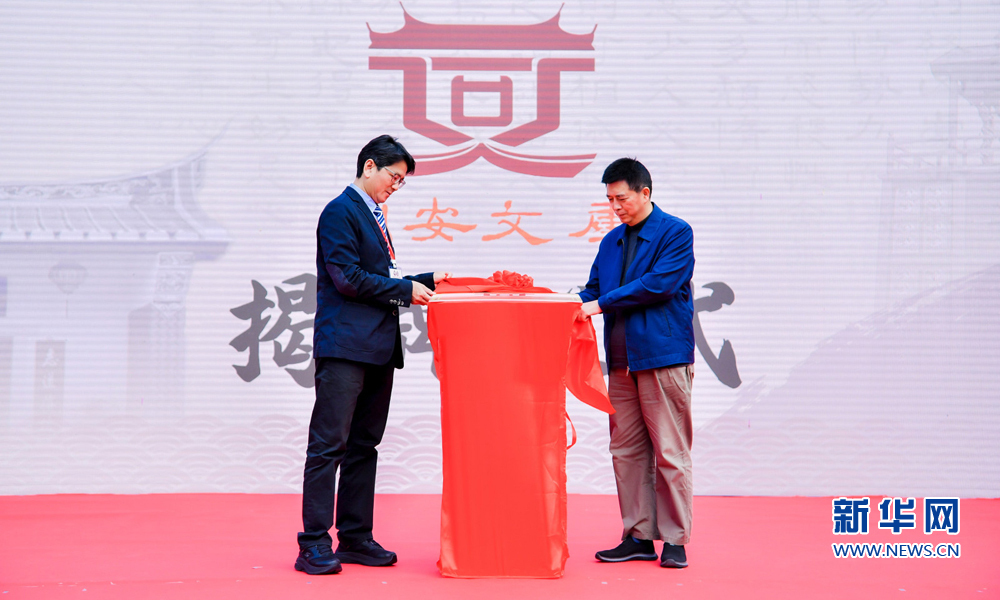 10日、開幕式で同安文庫の除幕式を行う主催者。(アモイ=新華社記者/劉黙涵)