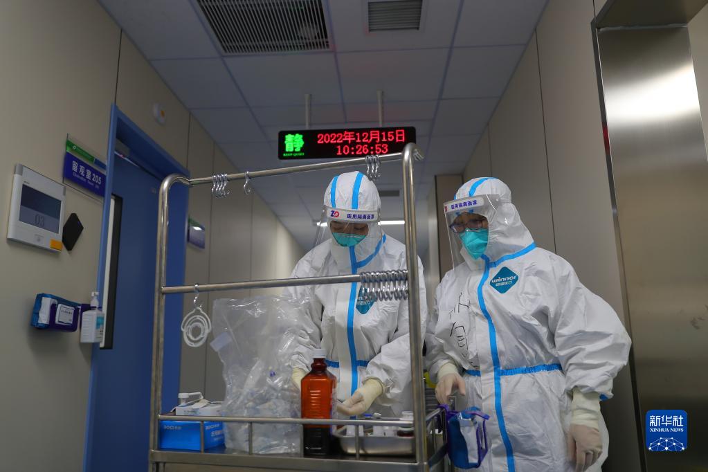 【新華社瀋陽12月19日】中国遼寧省瀋陽市にある中国医科大学付属盛京医院南湖院区の発熱外来は12月に入り、妊婦や緊急の重症患者など毎日200人以上を受け入れている。同院では他科の人員も救急診療、発熱外来、陽性者の病室などで支援に当たり、適切な治療を確保している。pagebreak