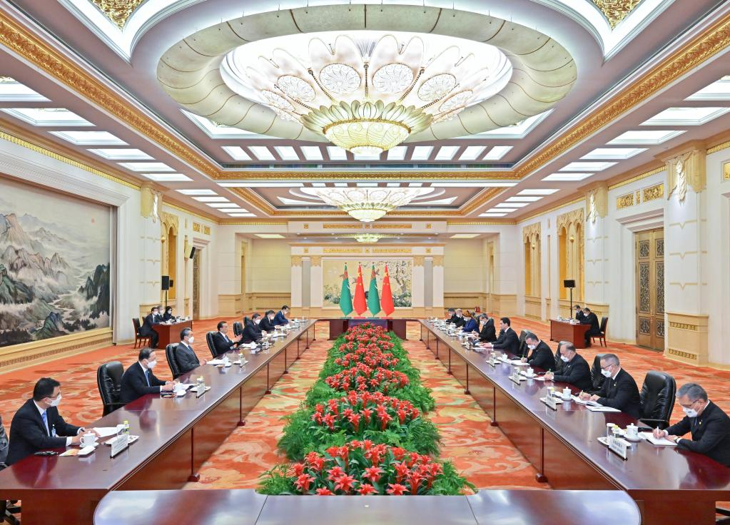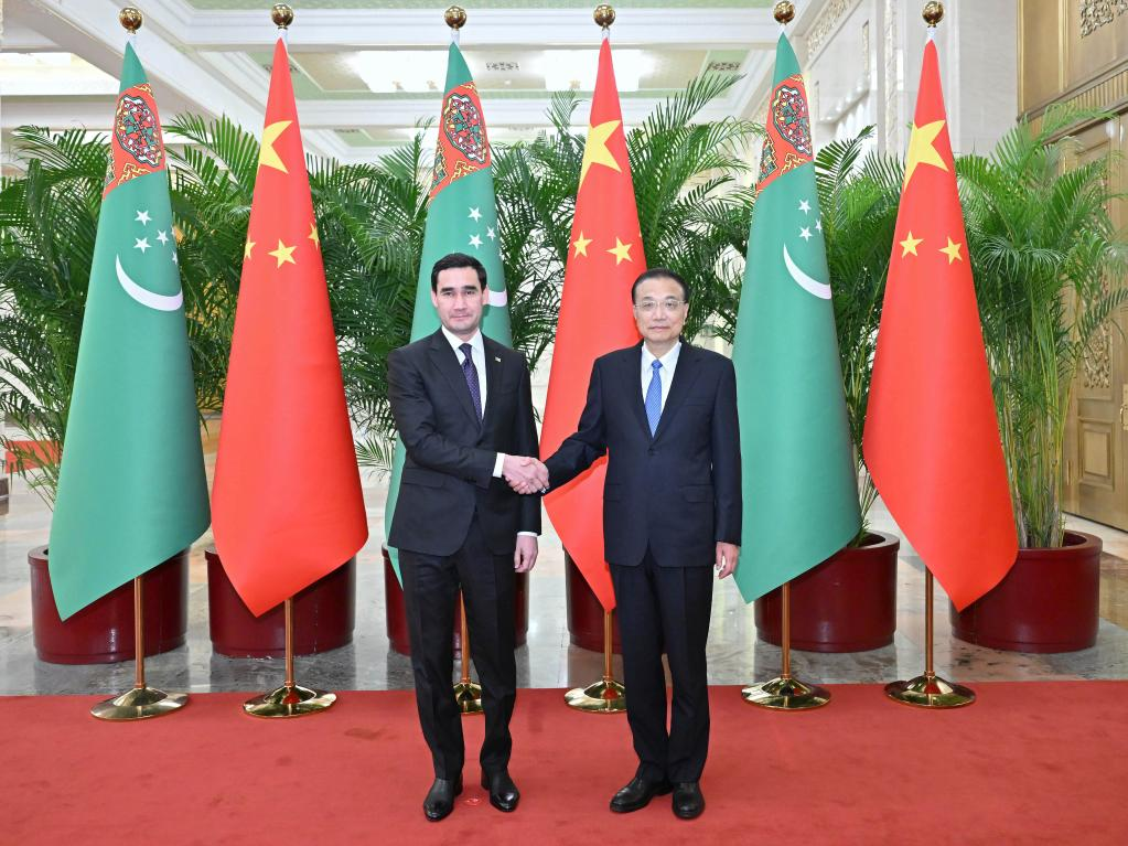 中国の李克強(り・こくきょう)国務院総理は6日、中国を公式訪問したトルクメニスタンのベルドイムハメドフ大統領と北京の人民大会堂で会談した。(北京=新華社記者/岳月偉)