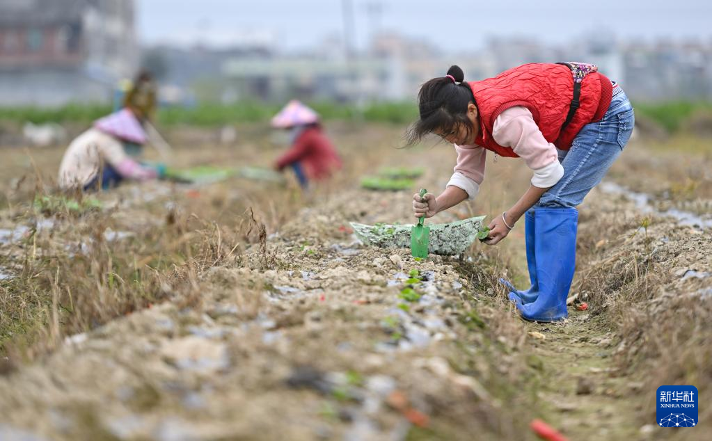 5日、海南省澄邁県の金安農場でウリの苗を植える農家の人。(澄邁=新華社記者/郭程)pagebreak