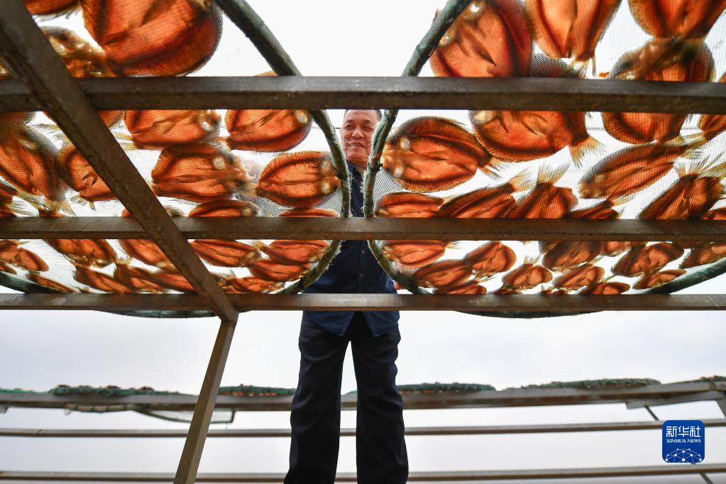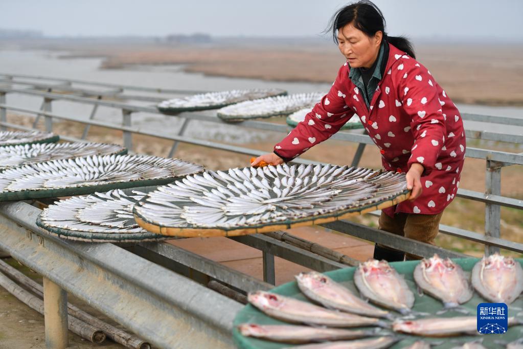【新華社岳陽1月20日】春節(旧正月)を間近に控え、中国湖南省岳陽市君山区銭糧湖鎮六門閘社区(コミュニティー)では、元漁師らが干物の加工と出荷の作業に精を出している。同地で生産される干物「六門閘風干魚」は国家地理的表示(GI)の商標を得ており、一部の漁師は水産養殖業に転職し、養殖した魚を干物にしてライブ配信などで販売を行っている。pagebreak